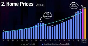 Remember, over time, real-estate prices rise, proving to be your greatest investment. “You might be buying at the top of the moment, but not the top of the market,” notes Jason Abrams, Keller Williams’ Head of Industry and Education, speaking at the firm’s annual February conference. “Who doesn’t wish they bought every house in their community 10 years ago. Don’t wait to buy real estate at the right time. Buy real estate and give it time.”