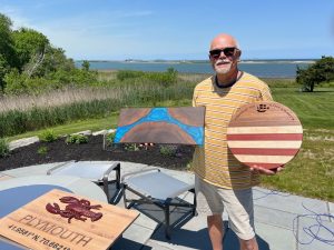 For hand-carved wood signs, see Michael McCarthy at Yankee Woodcarvers Signs in downtown Plymouth at 63 Court Street. “Visit in person or online for inspiration,” say McCarthy, who carves nautical art, folk art, family crests, house numbers, and sculptures. McCarthy worked as a carpenter, architect, mason, landscaper and lobsterman before opening Yankee Woodcarvers in 1996. He apprenticed under his dad. As a master woodcarver, McCarthy says he has carved over 10,000 pieces – all using “old-world tools and techniques.” McCarthy’s website: www.YankeeWoodcarvers.com.