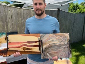 Paul Berchtold, the eldest son of Berchtold and Son’s Painting, now does less painting to accommodate his woodworking business that involves “a lot of resin-art skills”. Custom pieces can be ordered – from children’s stools and benches, bunk-bed ladders, to cutting/charcuterie boards, and coffee tables. Residents can learn more and place custom orders by calling Berchtold at: (339) 236-5168 or emailing BerchtoldAndSonsPainting@gmail.com. You may also visit him on Facebook: BerchtoldAndSonsPainting.