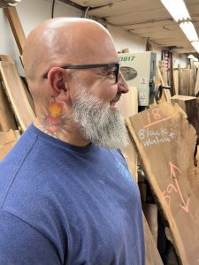 Friendly, tattooed and heavily bearded wood craftsman works with raw woods from across New England. “I love when clients are part of the design and ideation process, because it makes their finished product truly unique and highly personal,” Perry says. Edge, which moved from Plymouth to 737 Washington St. in Pembroke. You can find Perry at Plymouth Live Edge Saturday’s from 10 am to 4 pm – the store’s hours 7 days a week.